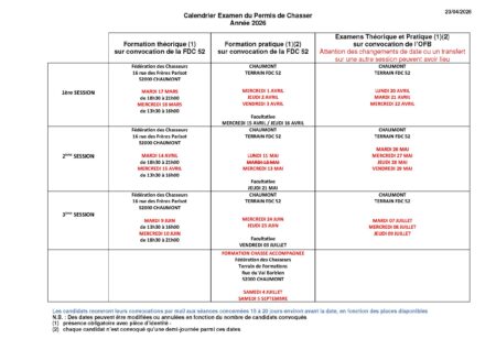 Les candidats qui n’ont pas encore le livre d’examen peuvent le retirer gratuitement au siège de la FDC 52 – 16 Rue des Frères Parisot à CHAUMONT